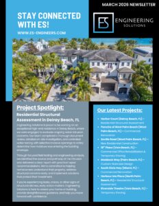 Engineering Solutions is proud to share our March 2026 Newsletter, featuring recent structural engineering projects, water intrusion investigations, and building safety insights across South Florida. This month’s Project Spotlight highlights a residential structural assessment in Delray Beach, FL, where our team was retained to evaluate ongoing water intrusion. Through detailed document review, on-site structural inspection,…